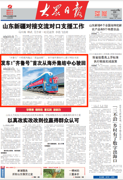 [大眾日報]山東高速集團統籌運營的中歐班列(齊魯號)首次從海外集結中心駛回