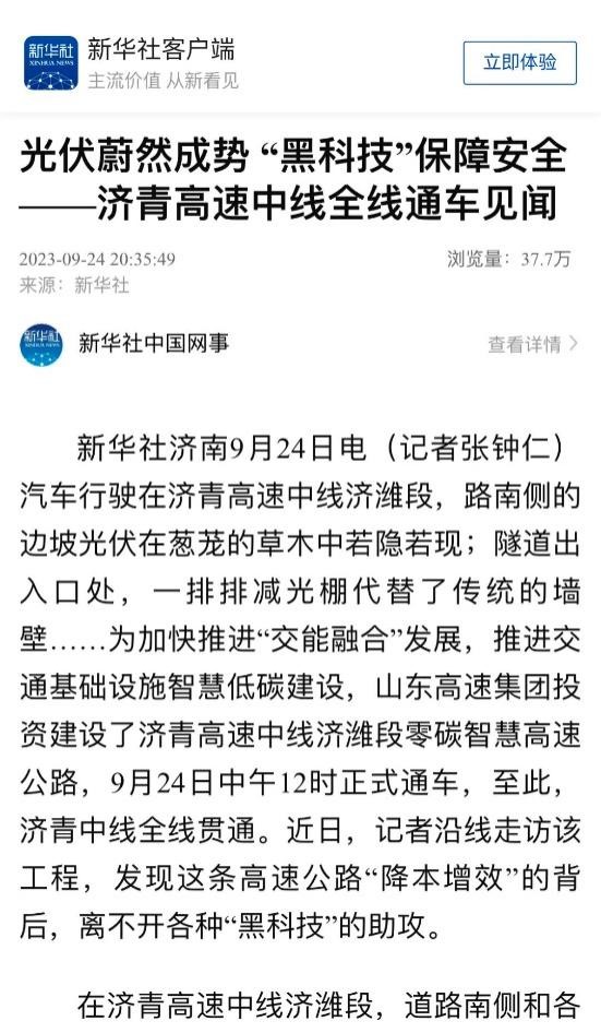 [新華社]光伏蔚然成勢(shì) “黑科技”保障安全——濟(jì)青高速中線全線通車(chē)見(jiàn)聞