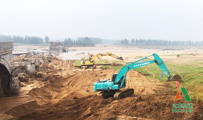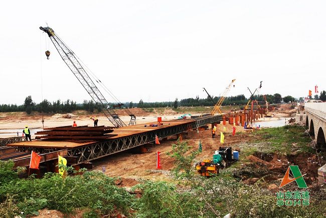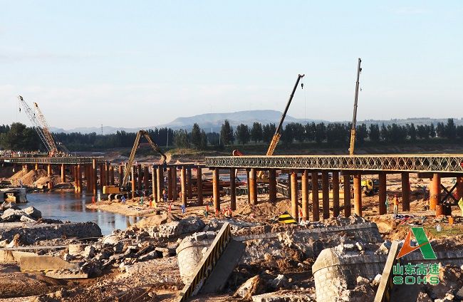 山東高速路橋集團承建的昌樂汶河平原大橋鋼棧橋搶通