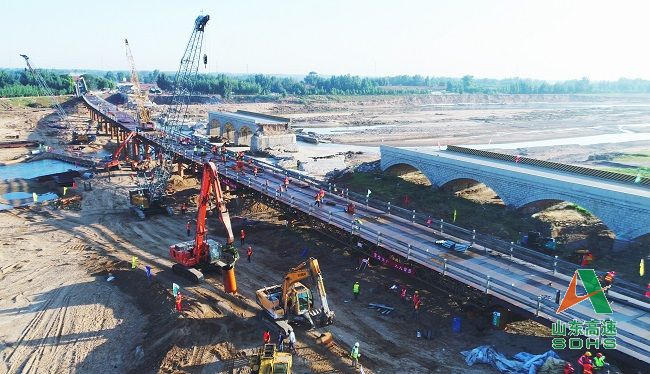 2018-09-26經過山東高速路橋集團6天6夜的緊張施工,9月9日下午,臺風“溫比亞”洪災中被沖毀的濰坊昌樂汶河平原大橋鋼棧橋提前建成通車,創造了省內同等規模橋梁最快建設速度。