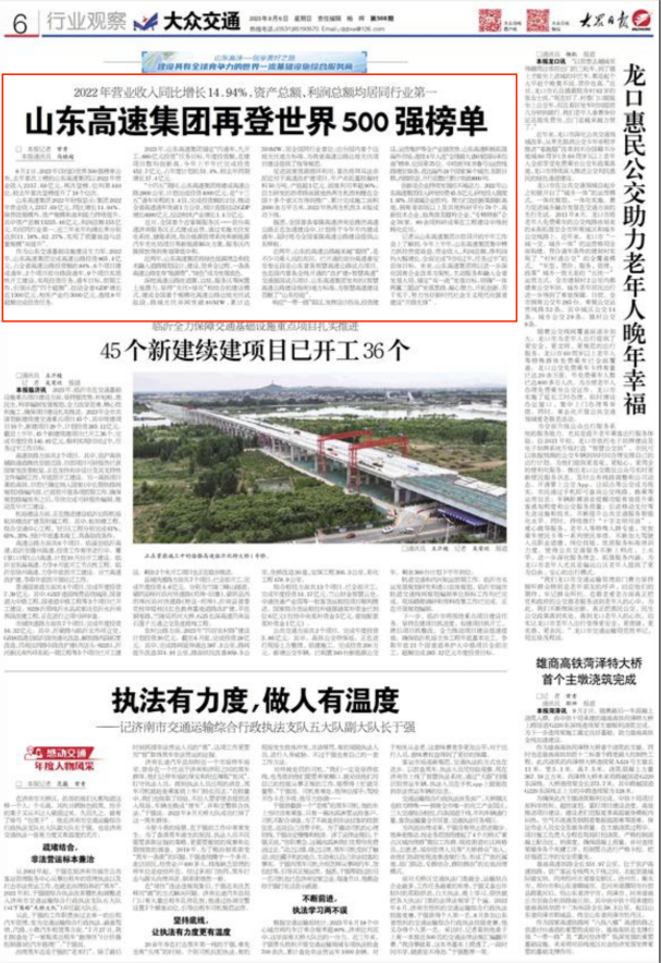 [大眾日報]山東高速集團再登世界500強榜單
