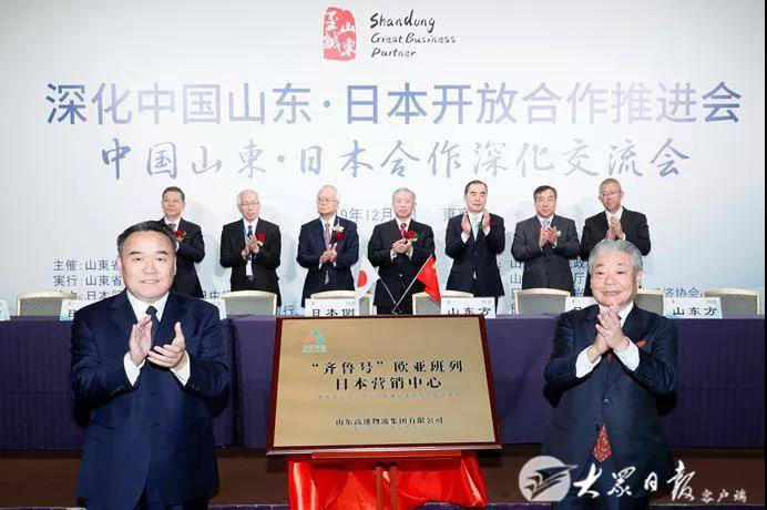 12月6日,在日本東京舉行的深化中國山東·日本開放合作推進會上,山東高速集團“齊魯號”歐亞班列日本營銷中心正式揭牌。