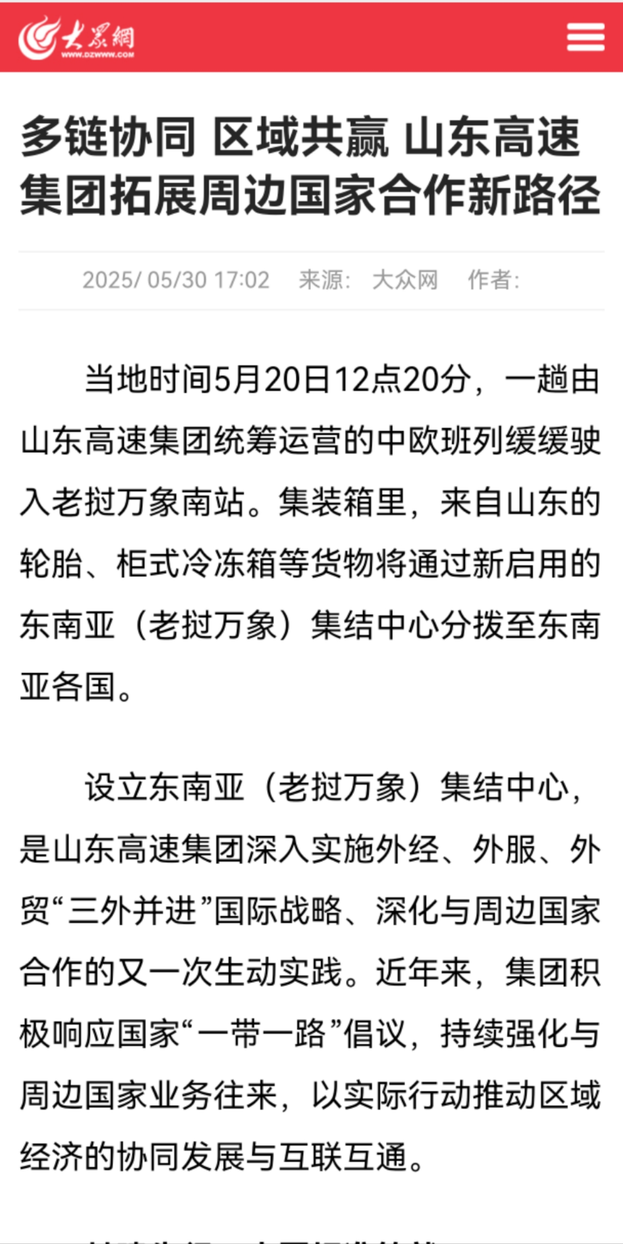 【大眾網】多鏈協同 區域共贏 山東高速集團拓展周邊國家合作新路徑