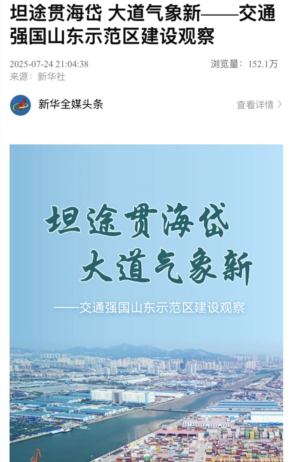 【新華社】重點關注山東高速助力交通強國山東示范區建設