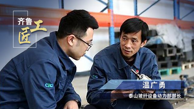 泰山玻纖的玻璃纖維產品,一束有4800根,其中每一根的直徑相當于頭發絲的八分之一到二十分之一,對生產設備的精度要求非常高。長期以來,生產玻纖的高端設備一直被國外壟斷。面對生僻的文字、加密的程序,拉絲機的維修保養工作異常艱難。設備出故障,溫廣勇只能帶領團隊摸索著更換零件。