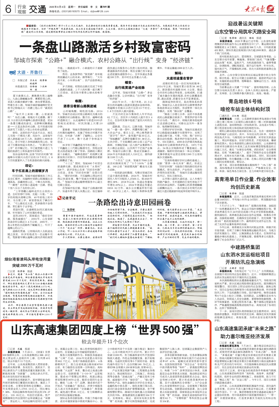 【大眾日報】山東高速集團四度上榜“世界500強”
