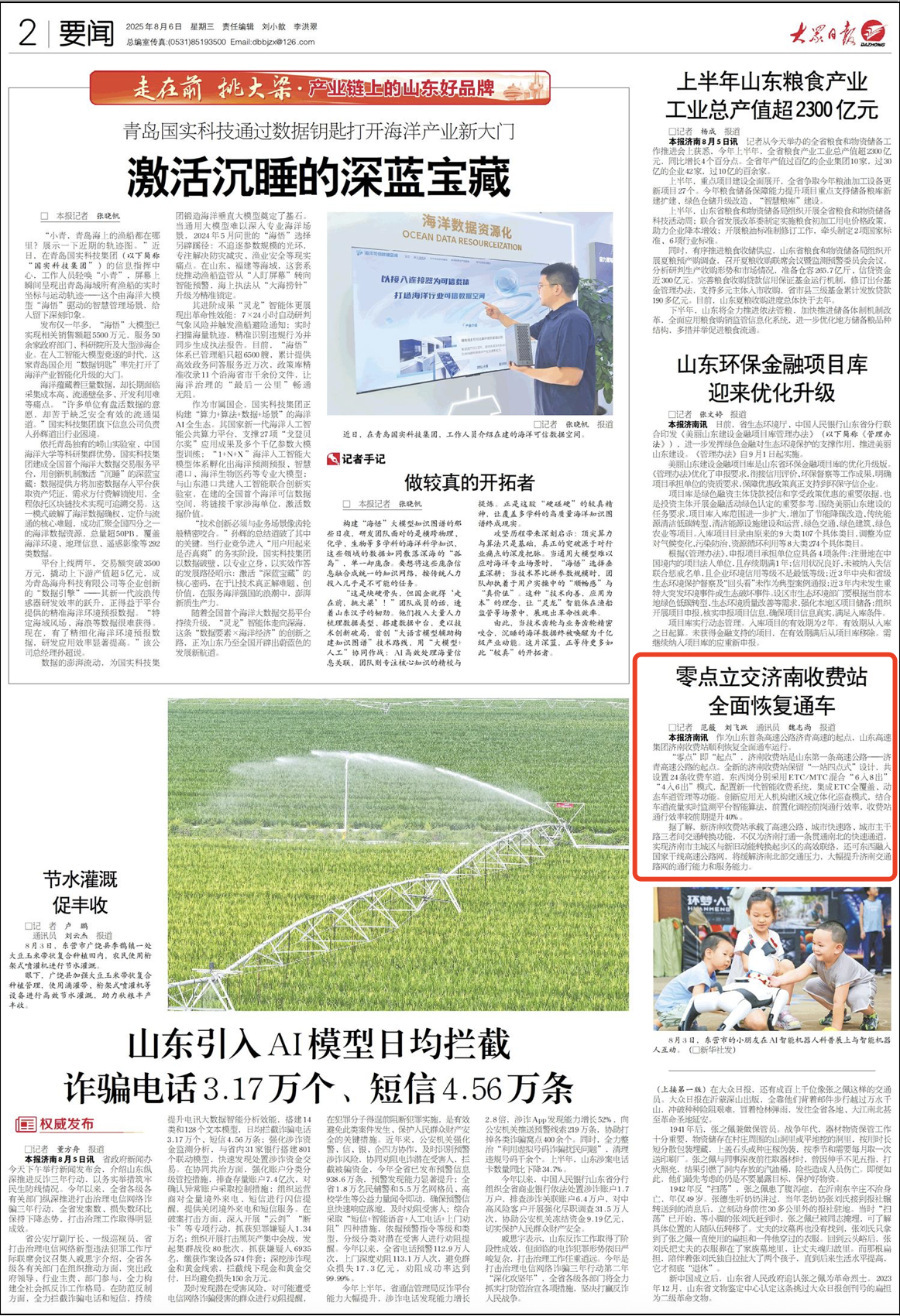 【大眾日報】零點立交濟南收費站全面恢復通車
