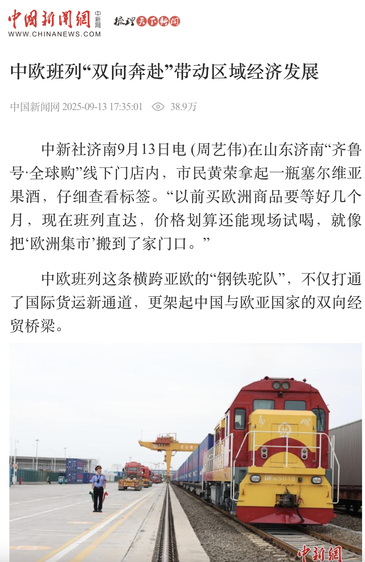 【中國新聞網】中歐班列“雙向奔赴”帶動區域經濟發展