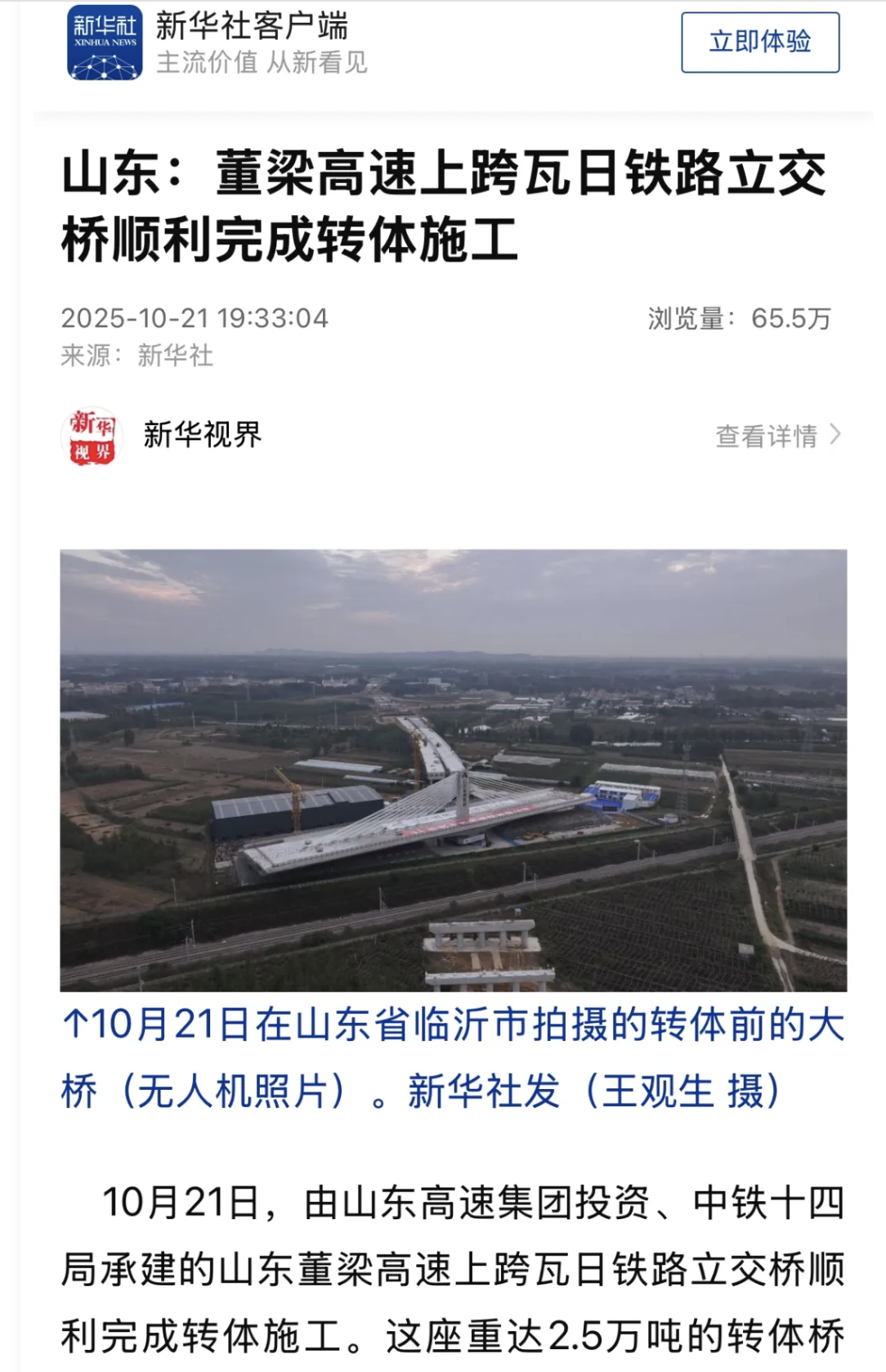 【新華社】山東:董梁高速上跨瓦日鐵路立交橋順利完成轉(zhuǎn)體施工